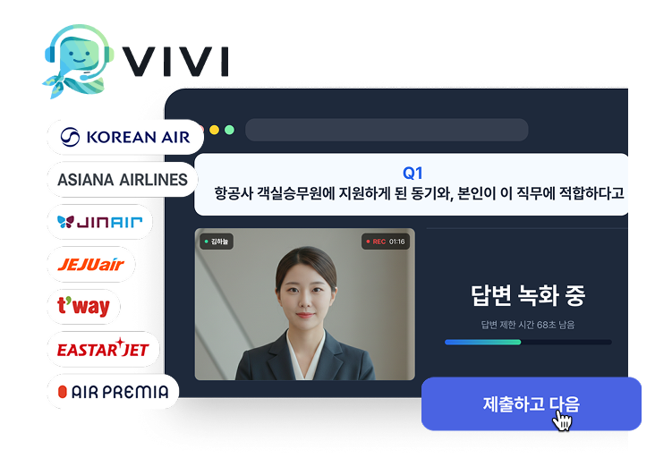목표 항공사 맞춤 실전 훈련,VIVI AI 정밀 모의면접